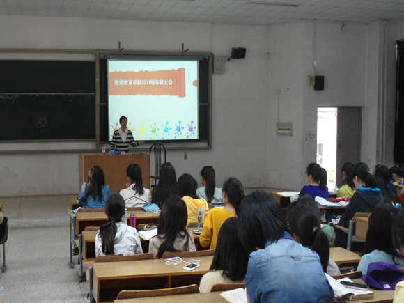 于学正楼401和402教室召开了2011级年级大会。会议由教师院党委副书记江胜尧老师和11级辅导员翟云秋老师主持。