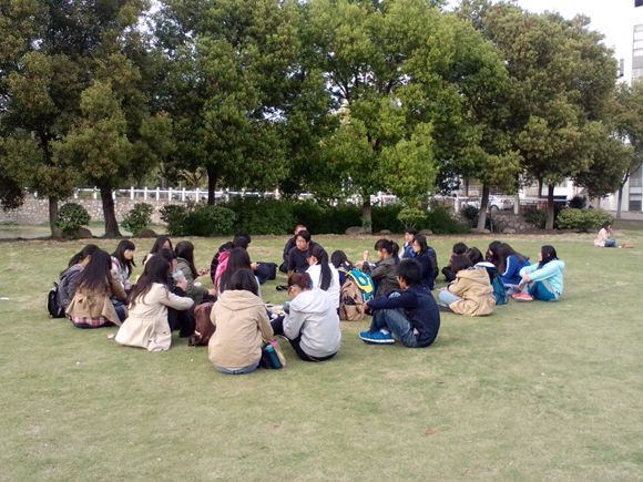 活动伊始,主持人带领大家围坐在草坪上,一起分享最近生活中发生的快乐或忧伤的事情,增进彼此的了解,融洽活动氛围。接着大家与主持人一起进行心理小测验,大家都积极参与,气氛被进一步调动起来。