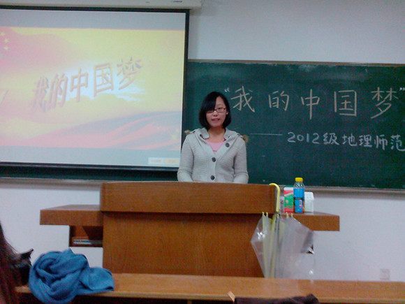 12级地理师范班的全体同学在我校仙林校区北区学行楼206教室开展以“我的中国梦”为主题的特色团日活动,本次活动由地理师范班团支书戴秋同学主持。
