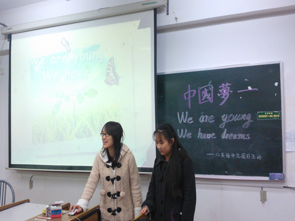 12级英语师范班召开了以“我的中国梦——We are young,we have dreams”为主题的团日活动。活动由团支书申奕和组织委员杨馨蕾主持,由宣传委员汤舒雯协助展开。