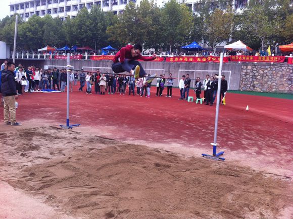 11级物理师范班的健儿在仙林校区西区田径场参加了南京师范大学第五十一届田径运动会。本班的钱佳伟同学代表学院参加男子跳高的比赛。