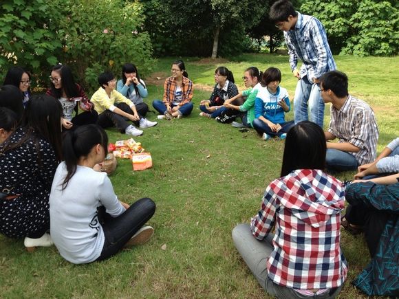 9月29日下午两点,12级化学师范班的同学齐聚西区月亮湾举行了新学期的首次户外班级活动。虽然在之前的班会上同学们都进行了简短的自我介绍,但是同学之间,尤其是新转入的同学和老生之间仍然有着许多的不熟悉,这次的活动正好给了彼此一个进一步交流的机会。