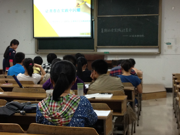 12级生物师范班在南师大仙林校区学行楼205教室召开主题班会。此次班会主要围绕向同学们介绍暑期社会实践的相关事宜。由团支书潘玥组织开展。