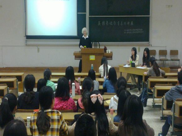 本科生做题为“美国基础教育概况”的专题讲座。11级英语师范班全体同学第二次积极参与并且认真聆听了此次讲座。