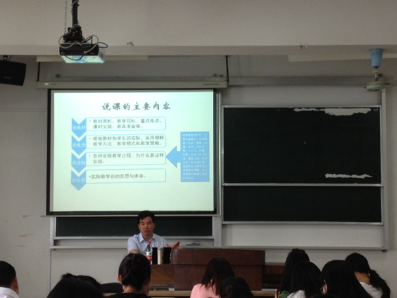 为下半年的江苏省教师技能基本功大赛做准备,10级化学师范班的同学们积极参加了此次讲座。讲座伊始,李老师首先简要介绍了大赛的基本条件和参赛项目。接着,他就大赛的说课部分进行详细的讲解。就说课而言,李老师将它和讲课、上课区别开来,让同学们对于说课有了一个系统的认识。然后,李老师还讲了包括提高教研活动实效、提高课堂教学效率等说课的意义。接下来,李老师带领着同学们进入今天的核心部分——说课的主要内容。从说“教学内容”到说“教学反思”,每一个环节都有其所遵循的规律。此外,李老师还给同学们介绍了许多说课的技巧和南京市高中化学学科技能竞赛课堂教学评价标准,同学们受益匪浅。同学们在观看金陵中学江敏老师的说课视频后,对说课有了更深的感触。讲座过程中,同学们在认真地做记录的同时,还和李老师进行交流。最后,10级化学师范班的同学对于李老师的讲座报以热烈掌声。