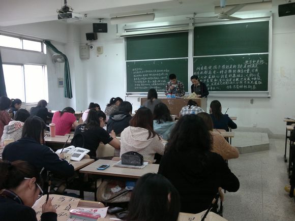 11级思政响应师范生提高教师技能,在学委黄丽珊的组织下,于学海楼417教室举行了第二轮书法写作。