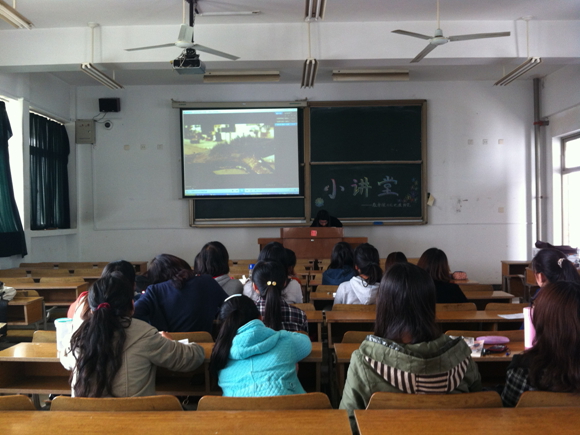 第二位是费培蕾同学,她本次小讲堂的内容是“雅安,加油!”,对于4月20日在雅安发生的地震做了介绍,给大家看了航拍的灾区的照片,之后,费培蕾同学又结合地理师范班专业的特点,把雅安地震和08年的汶川地震在震级、震源地、地震强度以及地震原因等方面做了比较,把课本知识运用于现实,最后,提出问题“学地理科学的我们,除了知道地震的专业知识外,如何预测地震以及把地震带来的损失降到最低?”同学们对此也进行了热烈的讨论。