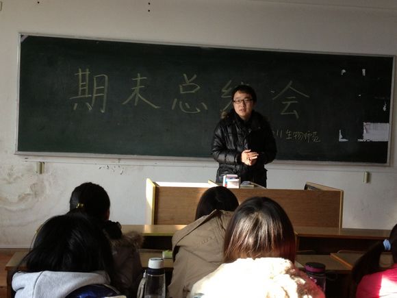 本次期末总结班会,主要由李晓亮老师总结了这一学期生物师范班取得的一些成绩,比如:校运动会,教师院班级风采大赛等。同时李老师也从我们所组织的一些活动中,指出了一些问题,给班委及全体同学提出了一些建议,激励同学们继续努力建设班集体。本次总结班会,李老师还对同学们给出了一些对于今后所选职业的一些建议,希望大家提早对自己做出正确规划,同时也对我们即将要面临的“到底是考研还是就业”这一问题,做出了一些分析,主要目的是鼓励同学们努力学习使自己成为一面优秀的人民教师。会议最后,李老师也简要的对下学期我们需要完成的一些任务做了说明。鼓励同学们全面发展同时积极备战期末,取得好的成绩。