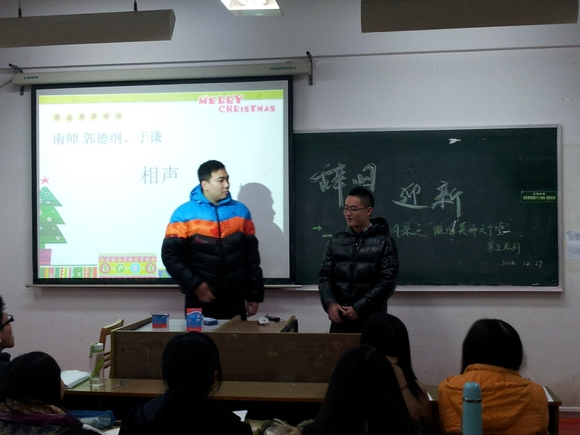 11级英语师范班在仙林校区学明楼411教室举办“辞旧迎新”主题班会。本次班会主要由班长吴桃桃同学主持,班主任翟云秋老师应邀出席。