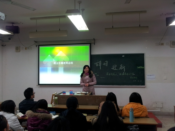 在班会的最后一个环节,班主任翟云秋老师针对即将到来的期末考试,向大家提出了几点复习建议,同时也对班级同学的寒假安排提出新的要求。此外,针对前段时间部分同学提出的疑惑,翟老师对考证、考研、出国、二外选择等几方面分别进行了详细的阐释,班级同学听后表示受益匪浅。