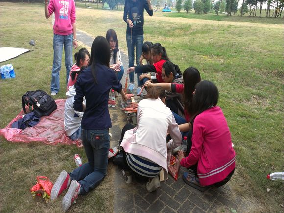 首先进行的活动是自助烧烤,而烧烤将同学们的积极性带高了,同学们都跃跃欲试,自己动手烧烤。刚开始生火的时候,同学们技艺生疏,等了许久火势才渐渐大起来。接着在烧烤的阶段,同学们不仅认真地准备着自己的食物,还“虎视眈眈”看着其他同学的食物,期间欢声笑语不断,大家哄抢着、打闹着,整个小山头都弥漫着食物的香气与同学们的欢声笑语。之后是属于同学们自由活动的时间,事先同学们以小组为单位进行游戏,有的玩杀人游戏,有的玩三国杀,有的玩uno,有的则是坐下来聊天促进相互之间的了解。最后,天色也渐渐晚了,同学们陆续结伴回学校。