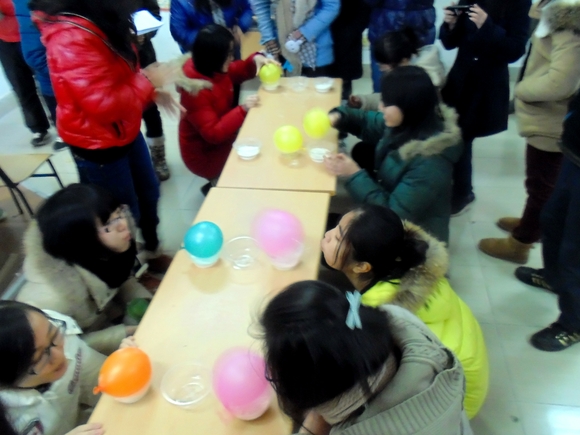 本次派对将同学们分为四组,派对分为两个部分。第一部分由三个考验小组团结精神的计分游戏组成,最后按累积得分排名分发奖品。三个游戏分别为吹气球、叠报纸和copy不走样。每个游戏有两轮,保证了每个同学的参与。其中叠报纸与copy不走样都很需要同学们团结协作,又极富有趣味。整个派对沉浸在温馨愉悦的气氛中,每个同学的脸上都洋溢着欢快的笑容。第二部分是不计分游戏,小组两两合并玩时下流行的游戏--天黑请闭眼。这个游戏不仅考验同学们的观察、应变能力,还考验同学们相互之间的了解程度。一个下午很快过去,整个派对在欢乐愉快的气氛中进入尾声。