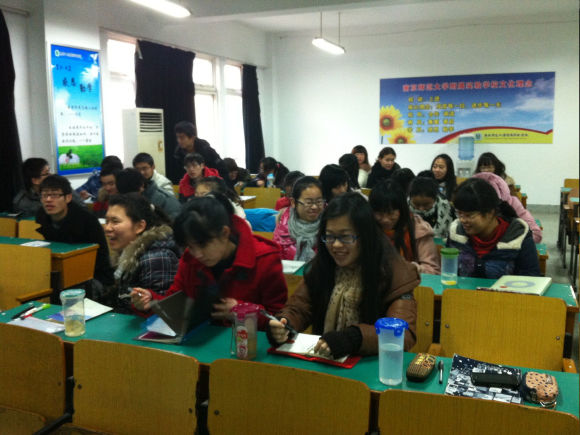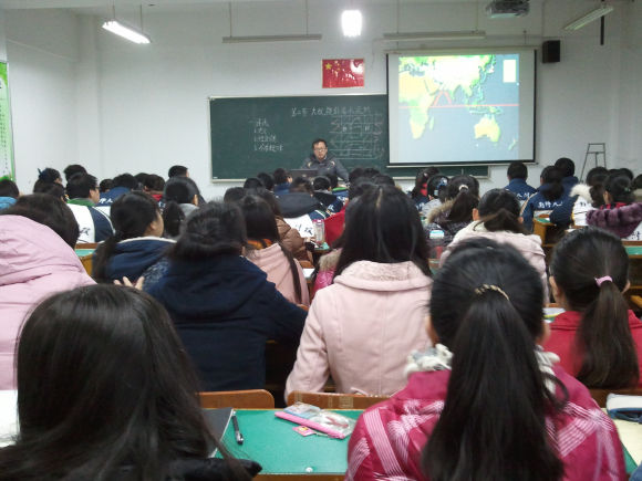 11级地理师范班全体同学集中在仙林大学城南师大附属实验学校235教室,进行中学教育基础课程的地理学科听课实习。
