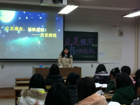 12月20日晚,12级历史师范的同学欢聚在一起举行了本学期的第二次班会。这次班会的主题是“立足现在、扬帆起航”,主要针对同学们普遍怀念高中而对现状非常迷茫的状况,以此为契机让班级同学们畅谈心中的想法。12级辅导员兼班主任孔晖老师也应邀出席了这次活动。