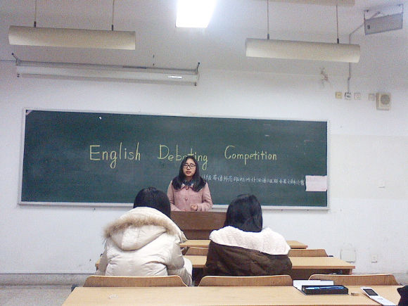 11级英语师范班在仙林校区学明楼212教室开展了对战国教院对外汉语班的首次英文辩论赛,并邀请了来自英语师范班的杨慧及来自英语翻译班的刘音姝同学担任评委。本次辩论赛借鉴了英国议会制辩论的形式,全程英文主持,英文答辩,别具一格。在两个班班委的精心安排、选手们的积极备战、同学们的热情参与下,本次活动获得了圆满成功。