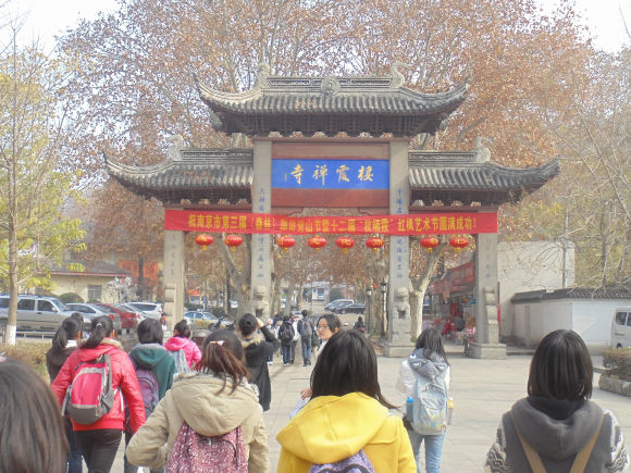 初冬的天气虽然很冷,但却丝毫没有影响同学们冬游的热情与愉悦的心情。踏着欢笑阵阵,同学们来到了栖霞。