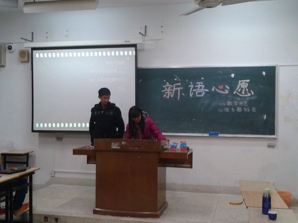 12级数学师范班全体同学聚集在学海楼416教室,开展了一场别开生面的“新语心愿”心理主题班会。