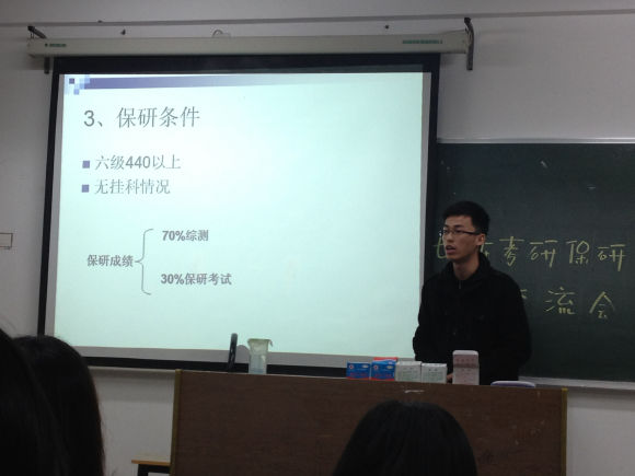 接下来的的两位学长学姐——马爱军和李蒙蒙是现在物理师范大四的并成功保研的,他们两位着重介绍了保研的流程,保研的条件,保研的名额,鼓励大家利用接下来的时间,去努力争取这些保研名额,无论是校内的还是校外的,只要同学们努力,还是都有机会的。