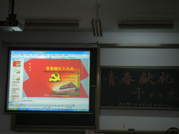 此次团日活动由团支书钱玲琳同学主持开展,在党的十八大胜利召开的基础下,活动共分为三个流程:重温、聆听、参与。