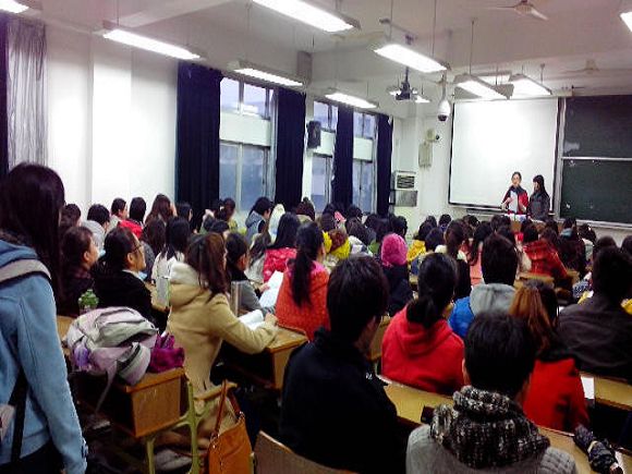 11级英语师范转专业英语师范班学生齐聚仙林校区学正楼308教室,参加晨练活动之“外文金曲大家唱”活动。本次活动由教师院转专业英语师范班团支书刘苗苗同学策划、组织,梁优子、高雅帅同学主持。