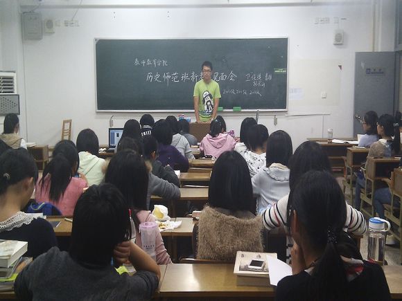 交流会上,10级历史班同学主要与新生交流两方面内容。第一,副班长张子健详细介绍了图书馆应用与学科学习情况。通过板书详解,为新生们详细介绍了书籍编码的认识问题,并且对各阅览室情况做简要介绍。第二,由心理气象员徐新宇交流参与学校学院活动的心得。徐新宇着重强调,大学的学习,课本知识固然重要,但不能僵化于单纯的课本学习,要结合多方面实践活动,在丰富的校园活动与社会实践中提升综合能力。另外班长陆丹婧也就大学班级管理问题与新生进行深入交流。