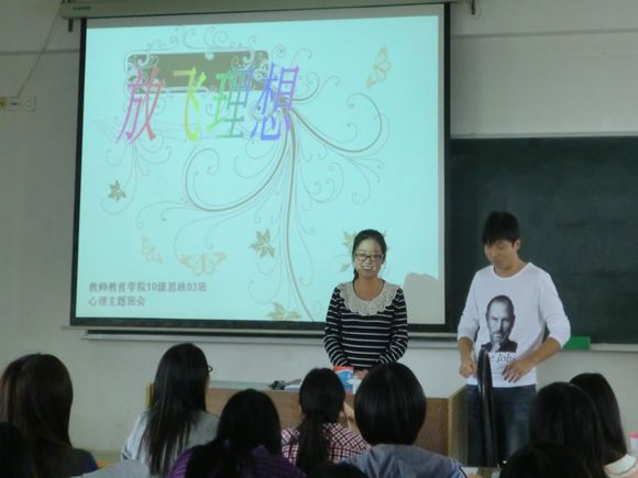 10级思政师范班于仙林校区学明楼506教室开展了“放飞理想”主题班会活动。此次活动由班级心理气象员徐君研、恽俊勋同学主持,全班同学积极参与。