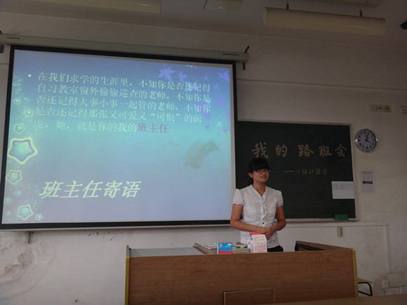 本次班会主要分为三个部分。会议伊始,在班长的主持下班主任杨霞老师发表了班主任寄语。主要分为五方面:一、对于班干部的培训要抓紧;二、希望同学们能在大二有进一步的人生规划;三、对于举办读书沙龙的设想;四、关于教师技能达标测试的准备;五、对于学校实践创新项目的申报问题。在发言的最后,杨霞老师还对同学们有了三句话的寄语,谆谆细语蕴含着对同学们殷切的希望和美好祝福,同学们认真聆听着老师的教诲,受益匪浅。
