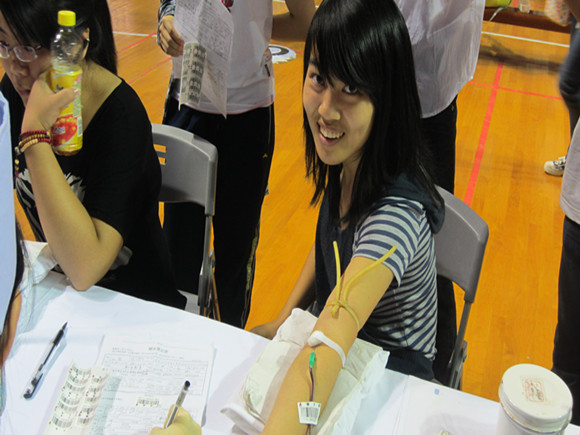 11级转专业英语师范班周婧宇、干甜、徐佳慧、张宇伟、蔡佳禾、童蕾、马炜丽、黄楠、江怡、冯祥等十人在仙林校区体育馆参加了无偿献血活动。班主任兼辅导员翟云秋老师带队组织献血工作。