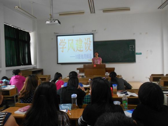 10级地理师范班在南师大仙林校区北区学行楼502举办了学风建设推进活动,该活动由团支书龚琳同学主持。
