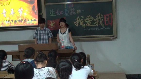 11级生物师范班团支部于5月4日晚上6:30,在南京师范大学仙林校区北区教学楼403教室,开展忆五四、听红歌、追校史、唱校歌等纪念活动。生物师范班全体同学出席了本次活动,本次活动由刘威同学和仲心同同学主持。