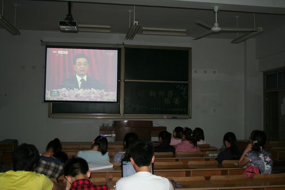 11级生物师范班在南京师范大学仙林校区学行楼403学习胡锦涛总书记在纪念共青团成立90周年大会上的讲话。