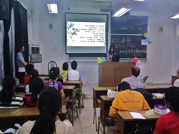 活动在郭宁生教授鼓舞人心的开场白中拉开帷幕。本次团日活动主要分为两个环节,在第一个环节“亲爱的南师,我们的家”中,先后由张家秀、顾冰仙、马敏、吴莹、涂晓娴、包靖雨同学等六位小组代表上台展示小组团日活动的成果,每个小组的活动都各具特色。张家秀小组以“东南西北”为四大主题,访遍南师各区食堂,寻找浓厚的食堂文化。而吴莹小组更是以情景剧的方式,向同学们重新展示了进入大学以来,在日常生活中发生的点滴小事,为同学们重拾了以前美好的记忆。在第二个环节“那些年,我们的南师”中,活动组织者与各小组配合,设立相关题目,进行有奖竞答。而活动现场气氛更是因此掀起另一波高潮。