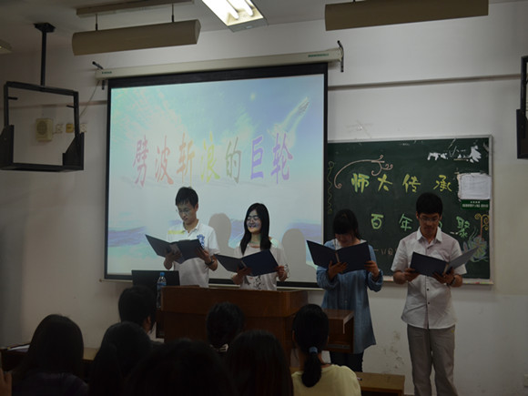 11级思政师范班全体同学在仙林校区学明楼303教室举行主题团日活动——“师大传承,百年相聚”。此次活动由11级思政师范班团支书曹晓秋同学主持,大家相聚一堂,共同回顾南师校史,也加深了对学校的热爱与敬佩之情。