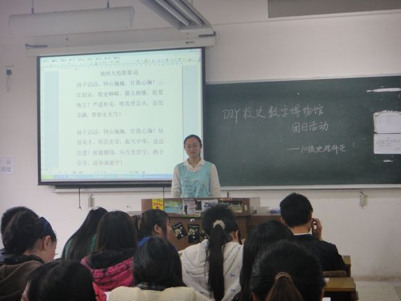 10级地理师范班在仙林校区学正楼109教室开展“忆校史”主题团日活动,此次活动是为迎接南京师范大学110周年校庆。