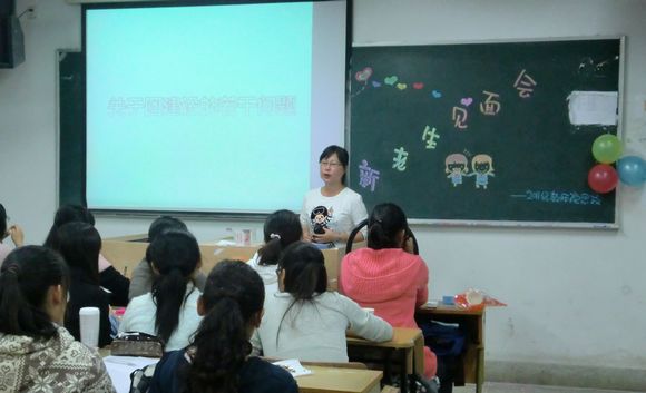 在11级新生的用心装扮下,教室焕然一新,气球点缀,一片温馨。伴着新生热情的欢迎掌声,10级学长学姐陆续走进教室。7点整,交流活动正式拉开序幕。首先,10级思政班各班委通过幻灯片展示结合讲演的方式,分别就班级建设、团建设、活动组织、学习问题、生活问题、心理发展等方面做了详细的答疑。其中,10级思政班班长鲍静对班级建设做了全面的讲解,并强调一个班级就像一棵大树,它的建设与发展是最重要的主干;组织委员陈正华向新生们介绍了思政班三大特色组织——幸福操作团之学习超人、吃货狂人、恋爱达人,新生们表现出极大的兴趣,纷纷叫好;学习委员徐楷森从“大学之学习、玩乐、追求”方面侃侃而谈,把会场热烈的气氛推向了高潮……各有侧重的演讲让大一新生听得津津有味,他们纷纷表示要向大二的学长学姐学习,做一个上进有为的大学生。