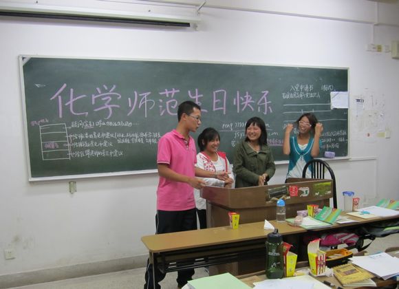 会前,经全体同学讨论决定确立每年10月11日为教师院11级化学师范班的生日。为了庆祝首次班级生日,同学们开展了一系列趣味盎然的活动。活动中,同学们积极配合,气氛活跃,展现了化学师范班新生的活力。