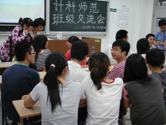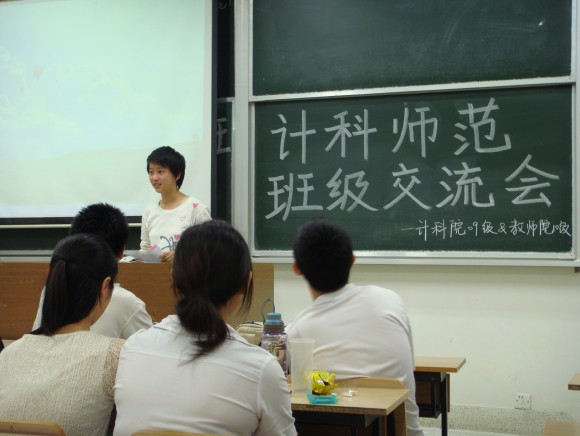 10级计算机科学与技术师范班在仙林校区学海楼221教室开展班级建设交流会活动。此次活动由蒋妍冰同学策划联系,有幸请来了计科院09级曾获得校“百优班级”荣誉称号师范班的学长学姐们,就关于学习和班级建设的话题做指导。全体同学准时参加活动,班主任兼辅导员李晓亮老师也出席活动。