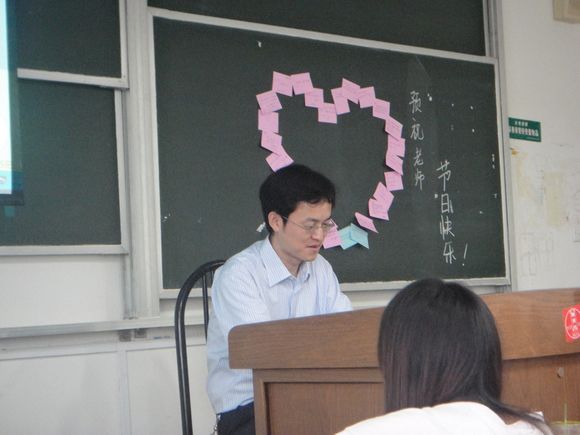 政治学原理课前,在思政班学习委员的组织下,同学们纷纷拿到贴心的小纸条,并在上面写下了自己想要对老师说的心里话,这其中包含了同学们对老师们满满的爱与祝福,当这些纸条拼成一个大大地爱心的时候,师生之间与生俱来的爱的关联不言而喻。在这样的爱心旁学习委员吴艺斐同学写下了:预祝老师节日快乐。这样创新的方式、精心的布置给了老师一个大大的惊喜,老师激动的心情难以言表,并感动地说:“你们也是未来的优秀人民教师,我也预祝你们节日快乐!”对此,同学们深感于怀,师生间的感情在这一刻似乎更近了。