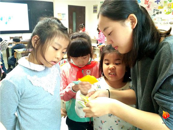 下午两点十五分,上课铃响。学生们做好课前准备,志愿者用别具一格的课堂形式传播生动有趣而实用宝贵的课外知识。