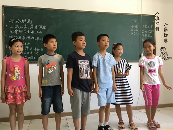 上午9点30分整,此次孩子们与此次需要进行实践的小组成员都早早地进入了指定教室。经过了前几天的相处与熟悉,团队成员与孩子们在上午的游戏环节配合地更加默契。此次游戏采用积分制,安静守则的孩子得到了一定的加分,调皮捣乱的孩子则受到了不同程度的扣分,因此整个游戏环节也十分流畅顺利。首先进行的比划猜词游戏,成员们拿出事先准备好的词语进行表演,让孩子们进行抢答,整个过程孩子们不仅展现出了出色的表演能力,其丰富的想象能力也让团队成员们为之一惊。紧接下来的便是孩子们所期待的正话反做游戏,成员们整体下达指令,孩子们根据指令的相反词进行表演,孩子们不仅体会到了游戏的乐趣,更锻炼了自身的反应能力与思维辨别能力。上半天的游戏环节在11点准时落幕。
