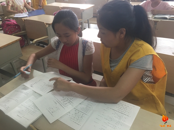 在活动即将结束时,发生了一个小插曲,有两位小朋友互相检举了对方在做作业时抄了答案,面对关乎诚信品质的问题,志愿者们严肃处理了这一问题,首先制止了这一行为,再对两位小朋友进行了教育,告诉他们诚信是基本的做人品质,在看到两位小朋友诚恳的认错态度后,志愿者们也及时询问了他们作业上的难处,并帮助他们思考解决,告诉他们以后再遇到难题时可以询问志愿者来解决,而不要选择抄作业的方式。