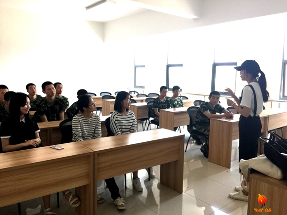 一个小时在参观营区的过程中很快过去,十点左右,战士们结束演练回到营区。我们的活动开始了。志愿者们和战士们先后进行了三个素拓游戏,现场气氛活跃,其中在“默契考验”游戏中,志愿者们与战士一对一亲切交谈,并通过回答问题的方式使志愿者们对消防战士进一步了解。最后,三个战士输掉游戏后还给大家带来了《学习雷锋好榜样》的歌曲表演,活动顺利结束。