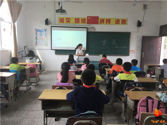 课堂上,志愿者首先简要介绍了重庆独特的地理、悠久的历史和多变的气候。志愿者还准备了有关于重庆迷人风光的图片,当图片一张张展示出来时,孩子们都赞叹不已。接着志愿者重点分享了重庆的特色美食,现场的气氛马上高涨了起来,孩子们纷纷了表示对美食的热爱。最后志愿者和孩子们讨论了重庆的地形,话题活泼,气氛热烈。在“阳光垄上”的课堂上,孩子们能感受到幸福,他们越来越愿意分享自己的心情,表达自己的看法和观点。