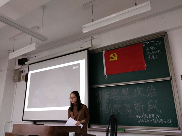 汉语言历史联合党支部在南师仙林校区学正楼403教室成功开展了思想政治教育专题学习活动。本次活动由汉历支部党支委牵头,1402团支部承办,多位预备党员和积极分子在此次学习报告会上进行了积极的展示和发言。支部正式党员、预备党员和入党积极分子们积极参与到此次月度党内活动中来,通过共同学习系列讲话、重要会议精神和关注高校思想政治教育最新动向,大大增强了时代意识,提高了党性修养。