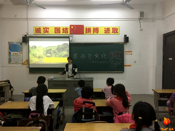 下午志愿者们提前到达了新桥小学,这个盛满欢乐的地方,教室内是孩子天真浪漫的笑脸,教室外是孩子活泼可爱的身姿。此次志愿以授课形式进行,主题为“墨西哥文化”,主讲人徐蒋平带领孩子们走进了墨西哥,领略了墨西哥的风光,感受了墨西哥迷人的文化。