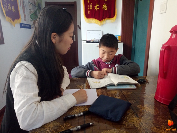 待一切准备完成,志愿者开始辅导小朋友预习语文课文。由于小朋友拼音笔画等基础都较差,在字词读写方面就耗费了不少时间。经了解,相同问题一直存在,志愿者在基础方面也一直指导,但收效甚微。一篇课文预习就花了大概一个小时,志愿者在其间或耐心或严厉地指导,鼓励小朋友提出问题,完成了第一项任务。由于小朋友只携带了数学课本,志愿者只得对着课本辅导基础知识,真分数和假分数的小朋友始终理解不清楚,志愿者一遍遍地强调,直到半小时后,基础较差的孙智祥仍是一知半解。无奈,志愿者只能留下作业,让小朋友思考完成,期待下一次解答小朋友可以彻底理解。