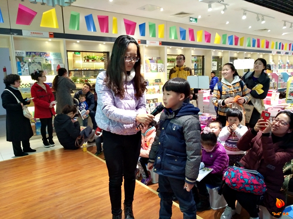 “红烛”青协的志愿者们来到凤凰国际书城,在四楼小舞台开展了此次“我是朗读者”志愿活动。本次活动以“春天”为主题,以朗诵诗歌、播放歌曲为主要内容,带小朋友们走进春暖花开的世界。