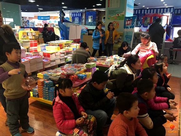 的志愿者们来到凤凰书城四楼小舞台,开展“我是朗读者”活动。