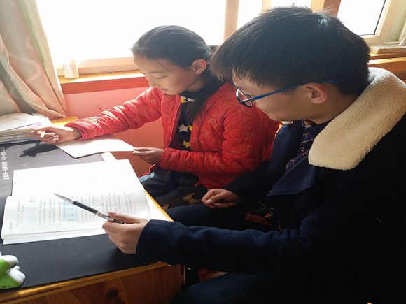 沙稼璐志愿者已经在唐诗小朋友家里有将近两年的家教经历,因此和小朋友相处十分融洽。唐诗一家对志愿者的到来也十分欢迎,还邀请志愿者和小记者在他们家吃中饭。等待小朋友吃完中饭后,志愿者便和唐诗小朋友开始了一对一的家教辅导。今天的任务主要是订正数学试卷和预习并记忆英语单词。沙稼璐志愿者分析了唐诗小朋友在数学考试中犯的错误,并且帮助她理解在数学试卷中不懂的难题。预习英语时,志愿者先领读一遍英语,让小朋友在后面跟读,以便在脑海里形成相应的记忆,往后在课堂的听力和默写中也会容易些。接着,志愿者让小朋友翻译书中的英语词组,遇到不懂的单词让小朋友自己查阅英文字典,在无形中培养了小朋友的学习自主性。