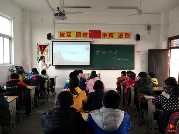 的志愿者在六合龙袍新桥小学顺利开展支教活动。一点十分志愿者便从学校正门出发,辗转三班公交终于在两个小时后到达目的地。三点半,志愿者进入教室做上课的准备工作,在黑板上写下本次课堂的主题——“梦回大唐”,开启了本次奇妙有趣的支教课程。